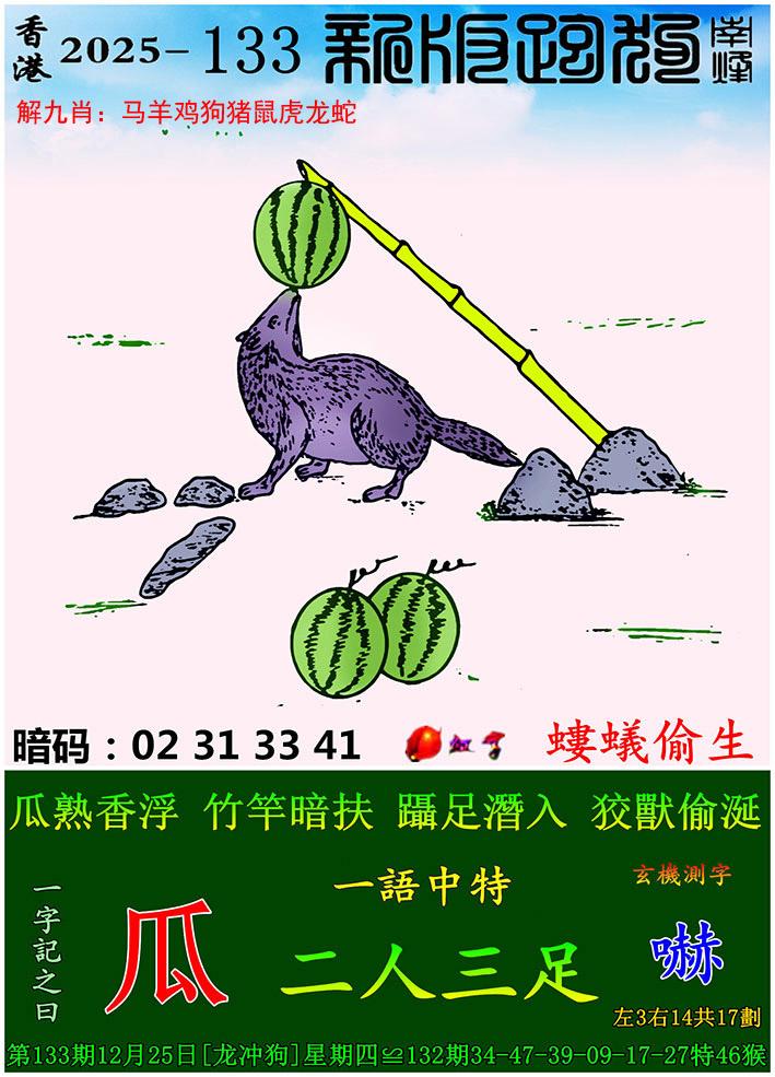 香港六合彩第133期将于2025年12月25日(星期四)开奖